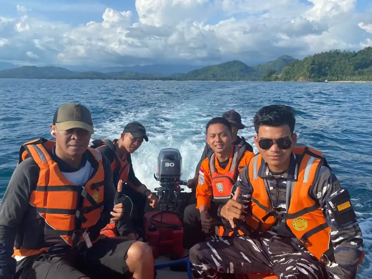 Menggunakan satu unit perahu karet milik Basarnas, tim yang berjumlah 5 orang dari Basarnas dan satu personil TNI AL menyisiri beberapa spot obyek wisata Pantai Carocok dan Pulau Cingkuak, dimana banyak para wisatawan berenang.