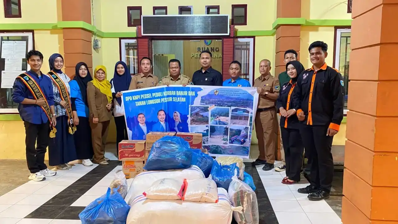 Wujud rasa prihatin dan pedulinya pada masyarakat yang terkena bencana alam terjadi di Kabupaten Pesisir Selatan, DPD Komite Nasional Pemuda Indonesia (KNPI) Kabupaten Pesisir Selatan, salurkan bantuan logistik, Senin 1 Desember 2025.