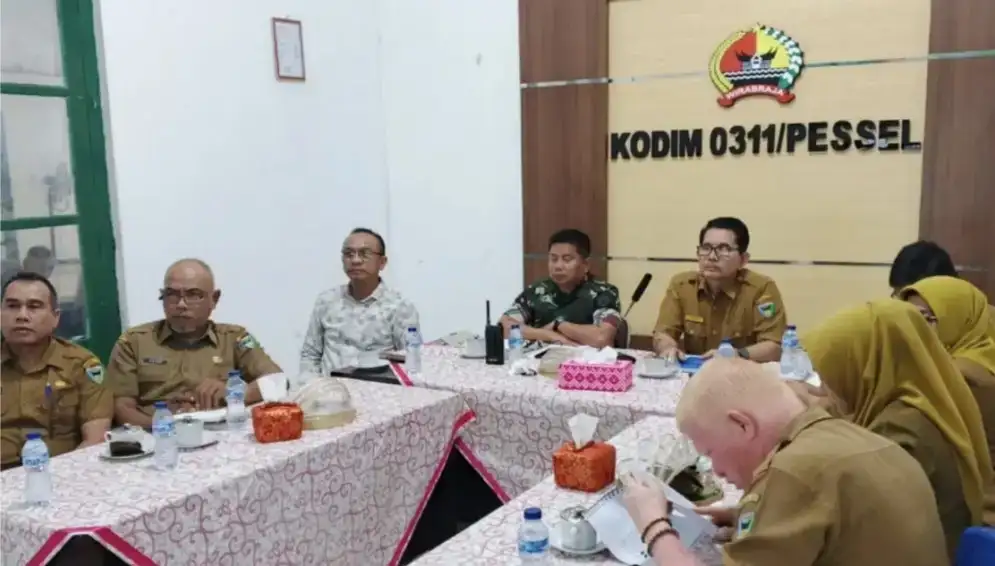 Pertemuan virtual tersebut berlangsung dari Kantor Kodim 0311/Pessel dan turut dihadiri Dandim 0311/Pessel, Letkol Czi Theodorus Sambua, S.T., M.Han., serta beberapa kepala OPD terkait, termasuk Kepala Dinas Perdagangan dan Transmigrasi, Afriman Julta, S.Pi.
