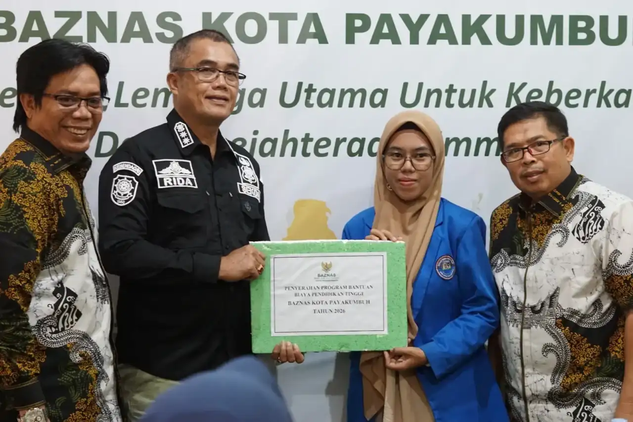 Pemerintah Kota (Pemko) Payakumbuh bersama Badan Amil Zakat Nasional (BAZNAS) Kota Payakumbuh kembali menunjukkan komitmen nyata dalam mendukung dunia pendidikan dengan menyalurkan bantuan sosial pendidikan bagi mahasiswa kurang mampu, Kamis (5/2/2026), di Kantor BAZNAS Kota Payakumbuh.