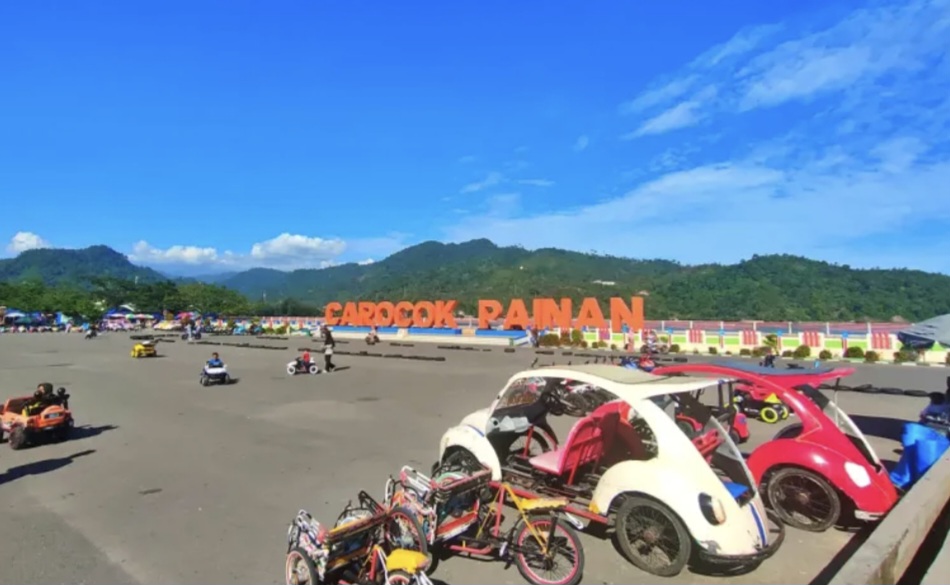 Pantai Carocok Painan merupakan salah satu destinasi unggulan di Sumatera Barat. Objek wisata ini menawarkan panorama laut, akses menuju Pulau Cingkuak, serta berbagai fasilitas rekreasi keluarga. (Andi)