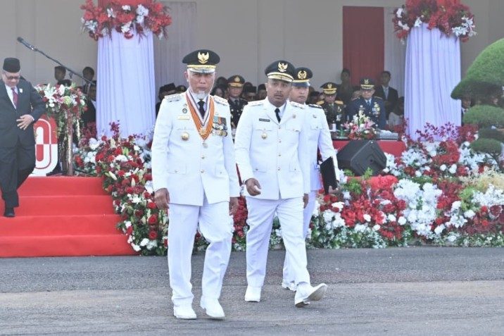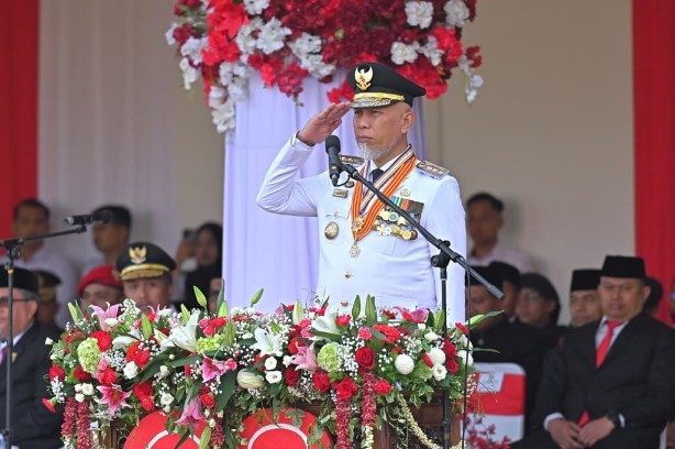 “Pelan-pelan, tahap demi tahap, cita-cita kita menghadirkan kesejahteraan bisa terwujud. Ke depan, kita juga berharap Indonesia benar-benar sampai pada impian besar tahun 2045 sebagai Indonesia Emas,” ujar Gubernur Mahyeldi usai upacara.