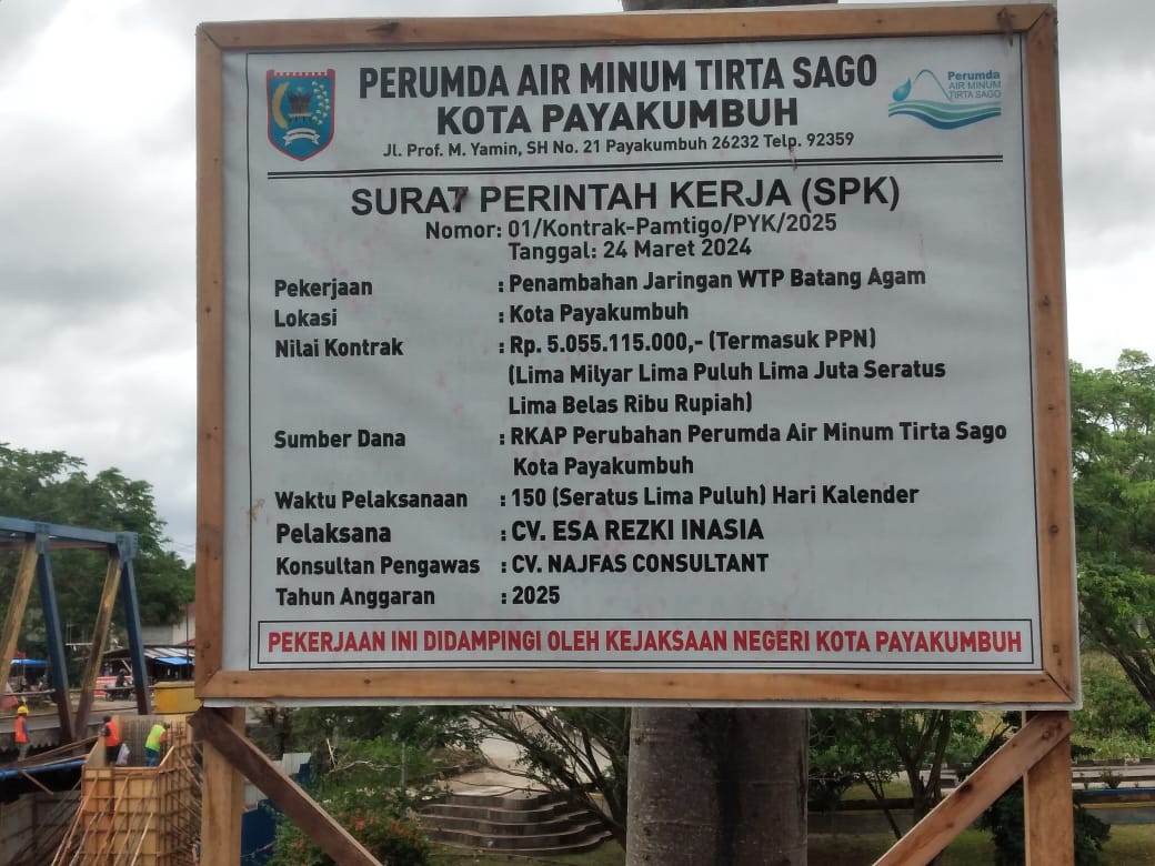 Buktinya, pada tahun anggaran 2025 ini, Perumda Tirta Sago melaksanakan kegiatan yang cukup signifikan, yakni penambahan jaringan WTP Batang Agam.