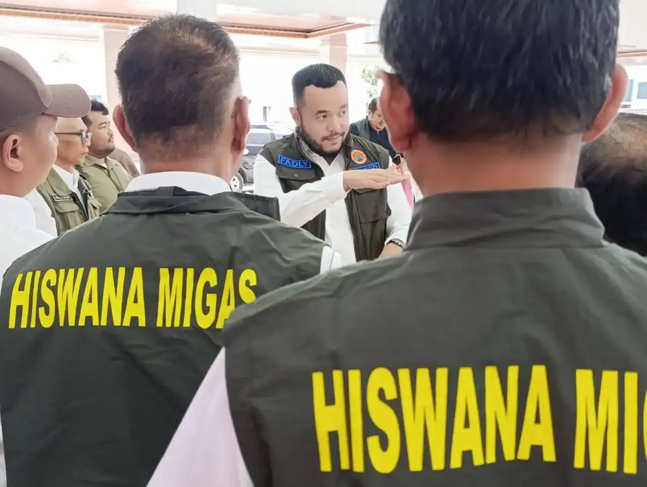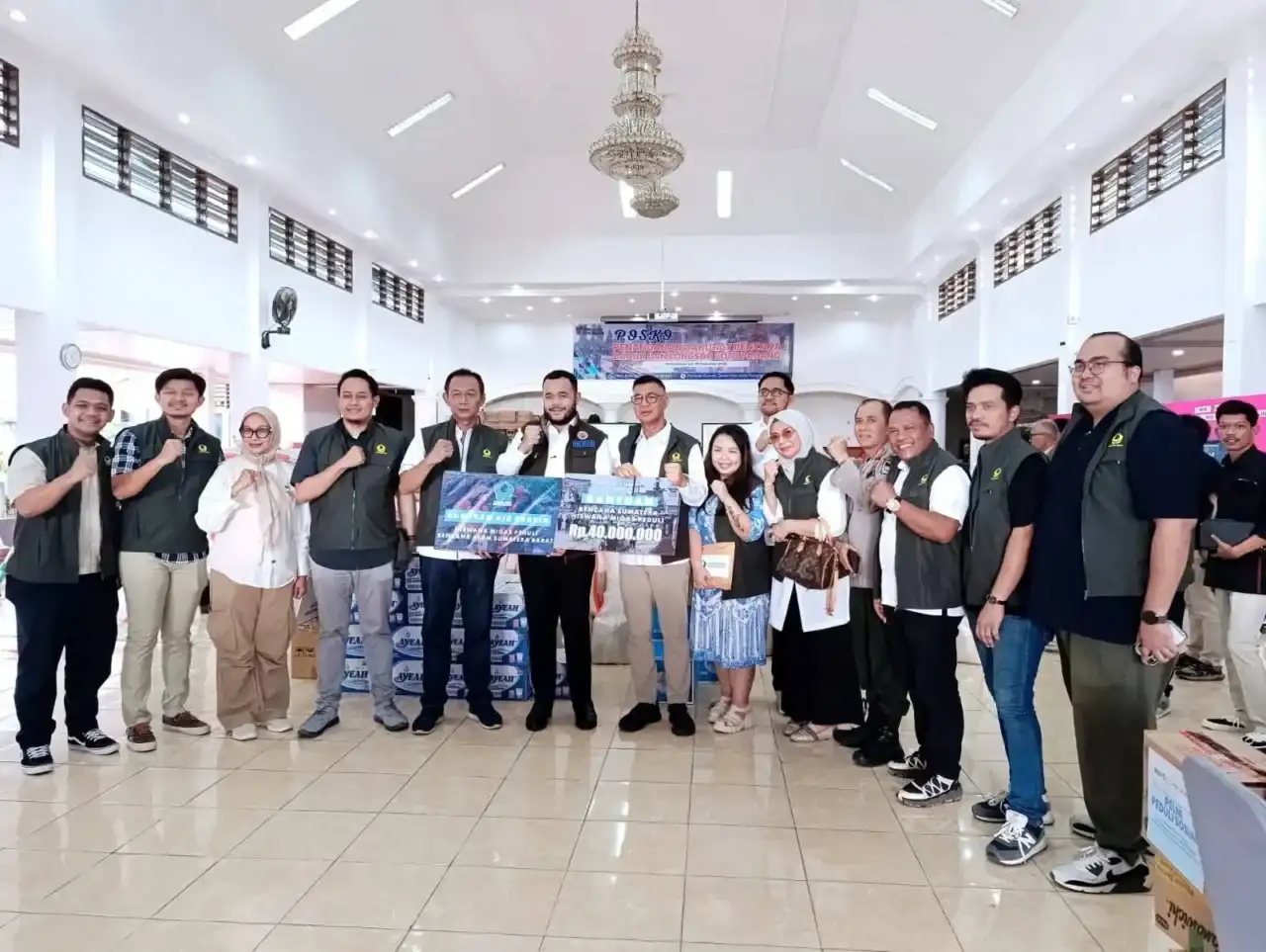 Ketua Himpunan Wiraswasta Nasional Minyak dan Gas Bumi (Hiswana Migas) Sumatera Barat, Ridwan Hosen, datang ke Posko Bencana Pemko Padang, Rabu (3/12/2025). Kedatangannya disambut Wali Kota Padang, Fadly Amran.