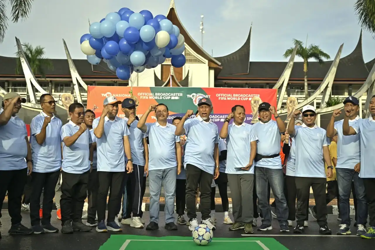 Gubernur Sumatera Barat (Sumbar), Mahyeldi Ansharullah menghadiri kick-off penyiaran Piala Dunia FIFA World Cup 2026 yang diselenggarakan TVRI Sumbar di Jalan Sudirman, Kota Padang, Minggu (1/2/2026). Kegiatan ini menandai kesiapan TVRI sebagai official broadcaster Piala Dunia 2026 di Indonesia.