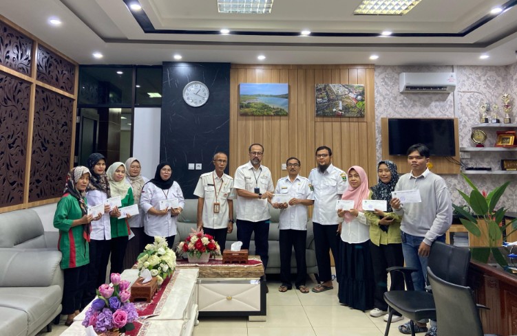 Pelaksana Tugas (Plt.) Sekretaris DPRD Provinsi Sumatera Barat, Drs. Maifrizon, M.Si, berikan santunan untuk keluarga besar sekretariat DPRD Sumbar, yang orang tuanya sudah berpulang ketika melaksankan tugas, baik yatim maupun piatu, serta anak-anak lingkungan sekitar.