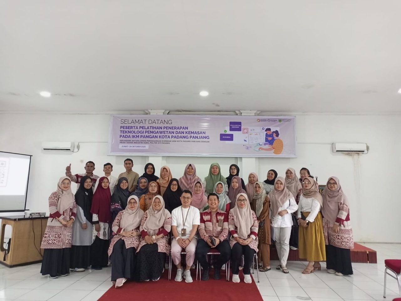 Tim dosen Politeknik ATI Padang sukses melaksanakan kegiatan Pengabdian Kepada Masyarakat (PKM) bertajuk Pelatihan Penerapan Teknologi Pengawetan dan Pengemasan untuk Peningkatan Daya Simpan Produk IKM Pangan Kota Padang Panjang, Jum’at (24/10/2025).