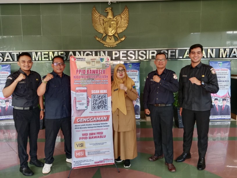 Badan Pengawas Pemilihan Umum (Bawaslu) Kabupaten Pesisir Selatan, melakukan sosialisasi di Sekretariat Daerah, dengan memasangkan banner informasi pelayanan informasi publik di loby kantor bupati setempat, Senin (23/6/2025).