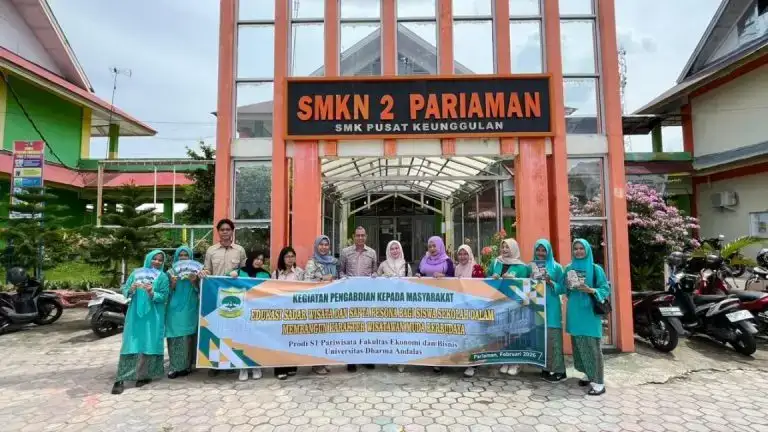 Program Studi S1 Pariwisata, Fakultas Ekonomi dan Bisnis Universitas Dharma Andalas (Unidha) kembali menunjukkan komitmennya dalam pelaksanaan Tri Dharma Perguruan Tinggi melalui kegiatan Pengabdian kepada Masyarakat (PkM) bertajuk “Edukasi Sadar Wisata dan Sapta Pesona bagi Siswa Sekolah dalam Membangun Karakter Wisatawan Muda Berbudaya”.