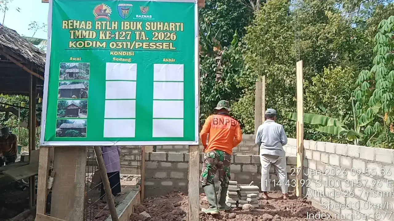 Tentara Nasional Indonesia Manunggal Membangun Desa (TMMD) Ke-127 TA 2026, Kodim 0311/Pessel melaksanakan Rehab Rumah Tinggal Layah Huni (RTLH) sebanyak lima unit.