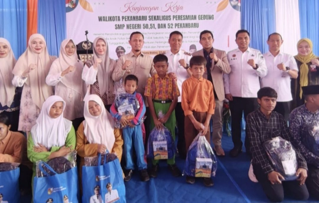 Untuk diketahui, bantuan ini diserahkan secara simbolis bertepatan dengan kegiatan Peresmian Gedung SMP Negeri 52 Pekanbaru, yang dihadiri oleh Walikota Pekanbaru Bapak Agung Nugroho SE, MM, Wakil Walikota Pekanbaru Bapak Markarius Anwar ST M. Arch, Plt Sekretaris Daerah Kota Pekanbaru Bapak Zulhelmi Arifin S.STP. MSi, Plt Kepala Dinas Pendidikan Kota Pekanbaru Bapak Masykur Tarmizi S.STP. M.Si dan Bunda PAUD Kota Pekanbaru Sulastri Agung S.Sos MH. (Mirza)