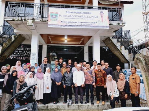 Anggota DPRD Provinsi Sumatera Barat, Irsyad Safar menggelar reses di Aula Kantor Wali Nagari Sungai Talang, Kecamatan Guguak, Kabupaten Lima Puluh Kota, Sabtu (22/2/2025) sore.