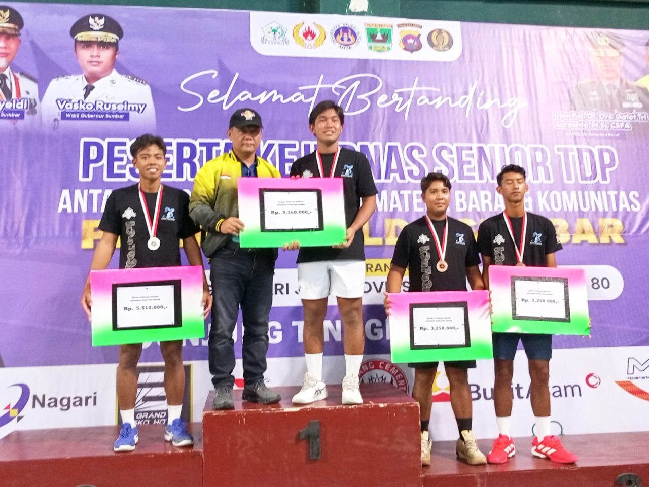 Lucky Candra Kurniawan memperlihatkan dominasinya di hari terakhir Kejurnas Senior TDP Piala Kapolda Sumbar di Lapangan Tenis UNP, Sabtu (4/10/2025).