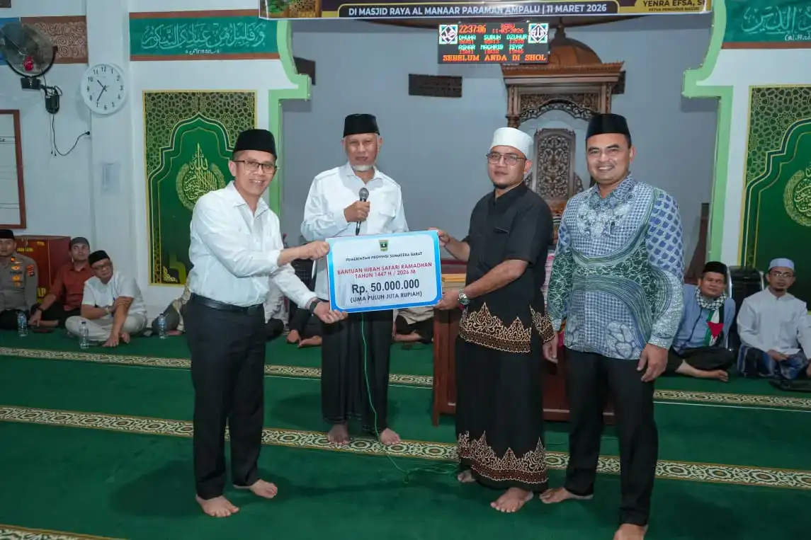 Gubernur Sumatera Barat (Sumbar), Mahyeldi Ansharullah melaksanakan Safari Ramadan di Kabupaten Pasaman Barat, Rabu (11/3/2026). Kegiatan ini menjadi momentum bagi Pemerintah Provinsi Sumbar untuk mempererat silaturahmi dengan masyarakat sekaligus menyerap langsung aspirasi terkait pembangunan daerah.