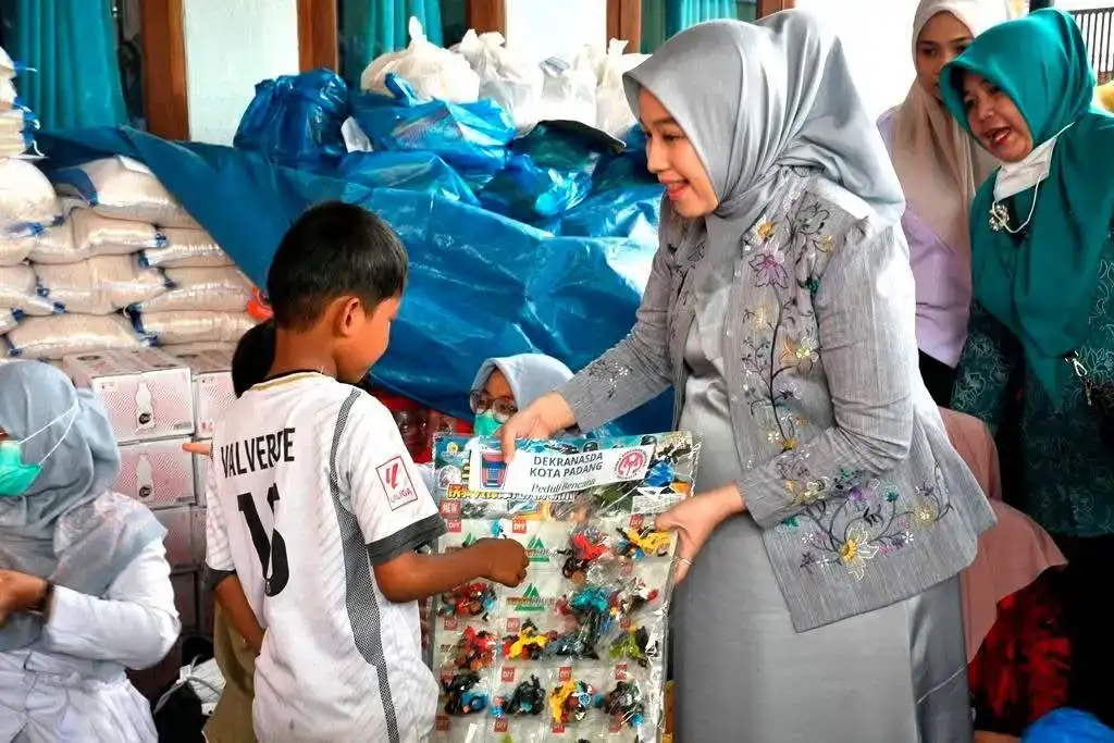 “Waahh, ada mainan, kami mau Buu…” ujar seorang anak dengan suara lantang melonjak kegirangan menyambut istri orang nomor satu di Kota Padang ini.
