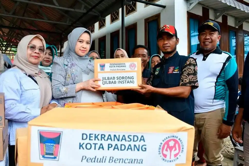 Bantuan dari Dekranasda Kota Padang berupa susu kotak, pembalut wanita, pampers, makanan ringan, beras, mainan lego, buku mewarnai, pensil warna, sandal, jilbab, pakaian dalam perempuan dan baju kaos laki-laki.