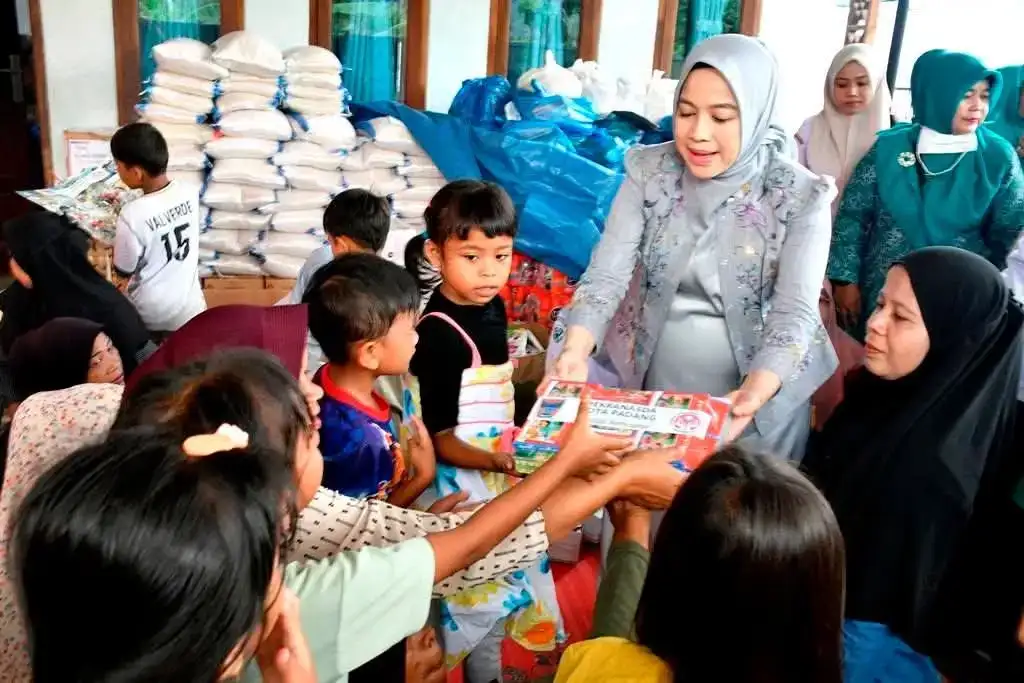 Kehadiran Ny Dian Puspita Fadly Amran di Posko Bencana Guo untuk memberikan bantuan kepada korban terdampak bencana banjir. Semua bantuan itu diserahkan kepada Ketua Posko Bencana di Guo.