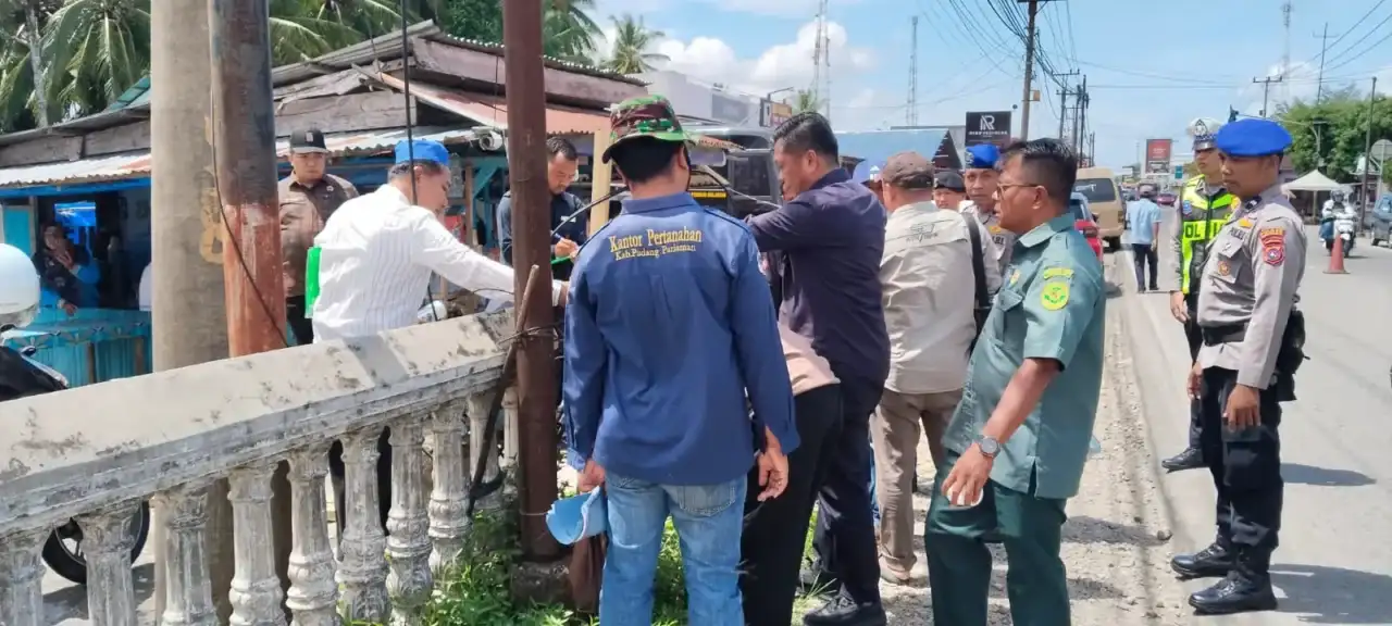 Membongkar tembok beton dan sebagian bangunan dalam eksekusi di Nagari Kambang Barat Kecamatan Lengayang, Pesisir Selatan
