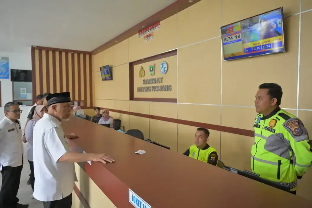 Gubernur Sumatera Barat (Sumbar), Mahyeldi Ansharullah menyoroti kualitas komunikasi petugas layanan saat melakukan inspeksi mendadak (sidak) di Kantor Samsat Kota Padang Panjang, Rabu (25/3/2026). Sidak dilakukan pada hari pertama masuk kerja aparatur sipil negara (ASN) pasca cuti bersama Idulfitri 1447 H untuk memastikan pelayanan publik berjalan optimal.