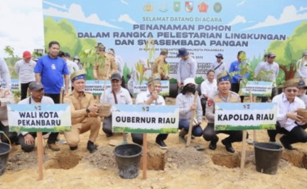Wali Kota Pekanbaru Agung Nugroho dalam acara penanaman pohon dan jagung pipil dalam rangka pelestarian lingkungan dan swasembada pangan di Kompleks Perkantoran Tenayan Raya, Senin (21/4/2025), mengatakan, kegiatan ini dilakukan di lahan seluas 11 hektare dari total 45 hektare yang sebelumnya belum termanfaatkan.