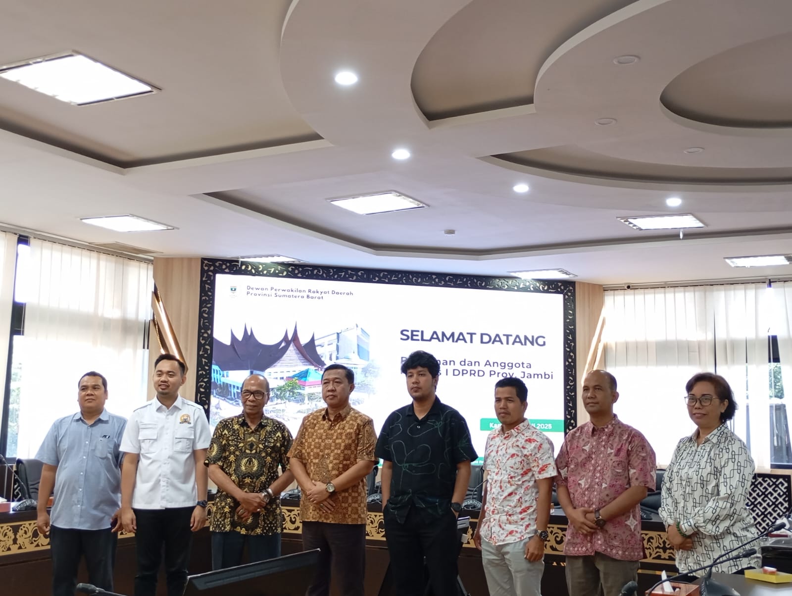 Ketua Tim Pakar DPRD Provinsi Sumatera Barat, HM Nurnas menerima kunjungan pimpinan dan anggota Pansus 1 DPRD Provinsi Jambi di ruang khusus 1 DPRD Provinsi Sumatera Barat, Kamis (24/4/2025).