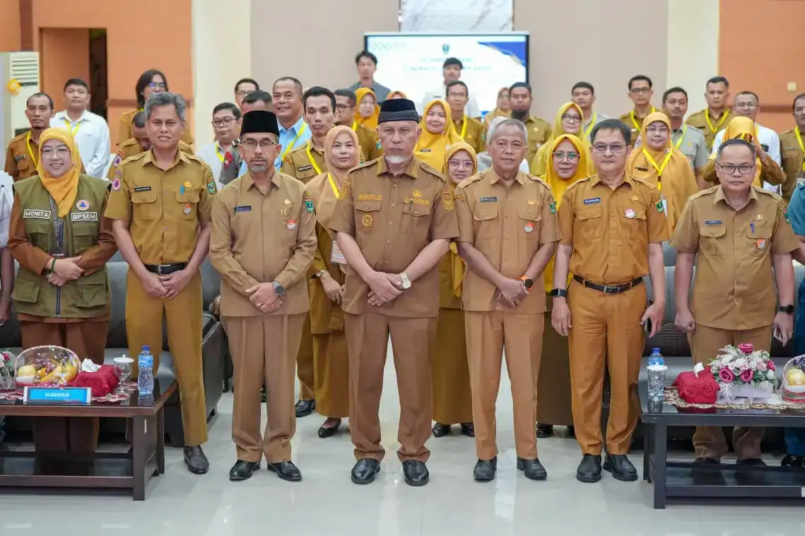 Gubernur Sumatera Barat (Sumbar) Mahyeldi Ansharullah, membuka secara resmi Pelatihan Penyusunan Rencana Kontingensi Bencana di Lingkungan Pemerintah Provinsi Sumbar tahun 2026 di Aula BPSDM Sumbar, Senin (6/4/2026).