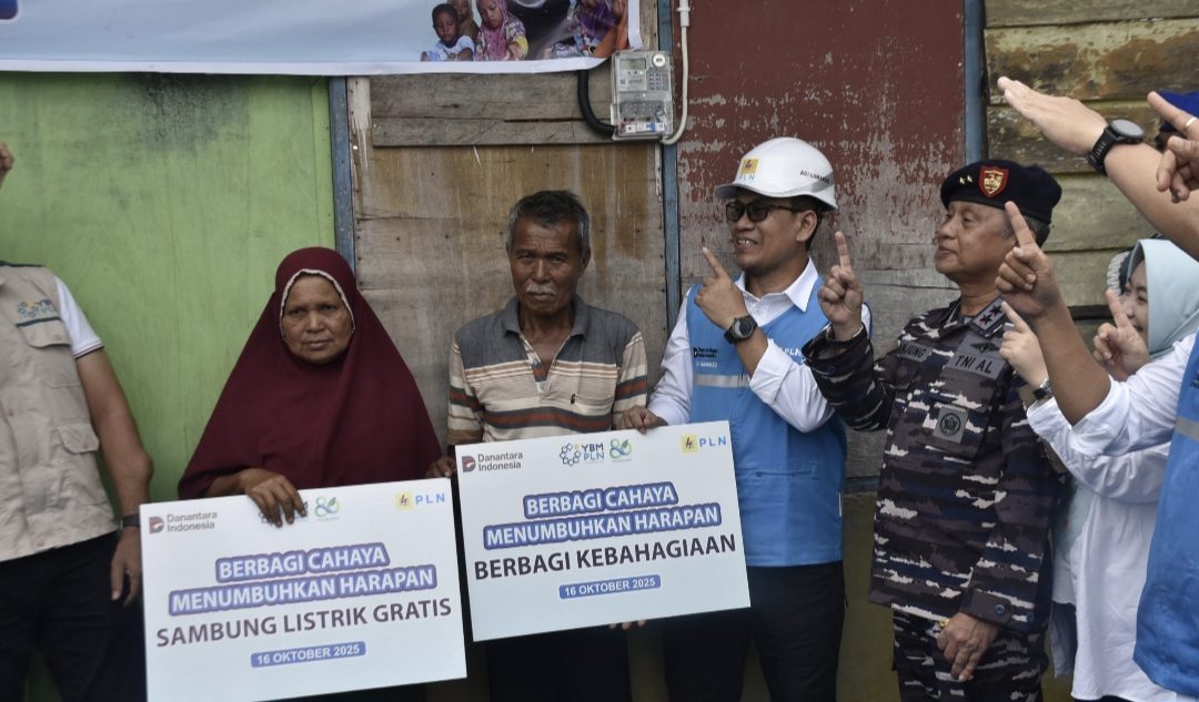 Komandan Komando Daerah TNI Angkatan Laut (Dankodaeral) II, Laksamana Muda TNI Sarimpunan Tanjung menghadiri kegiatan penyerahan listrik gratis kepada masyarakat pantai pra sejahtera di Desa Teluk Buo, Kecamatan Bungus Teluk Kabung, Kota Padang, Kamis (16/10/2025).