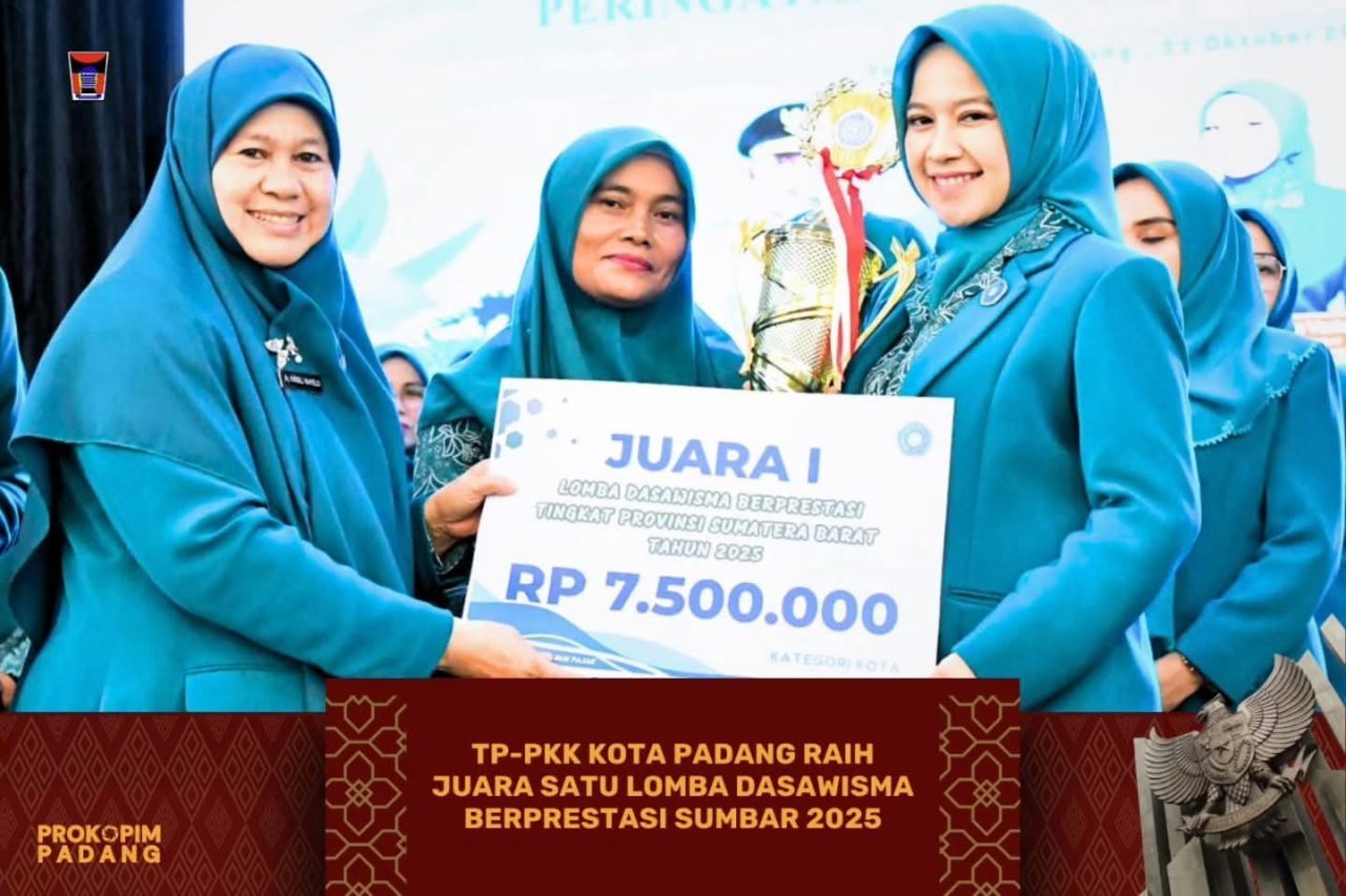 Tim Penggerak Pemberdayaan dan Kesejahteraan Keluarga (TP-PKK) Kota Padang kembali menorehkan prestasi gemilang dalam Lomba Gerakan PKK dan Dasawisma Berprestasi Tingkat Provinsi Sumatera Barat (Sumbar) Tahun 2025.