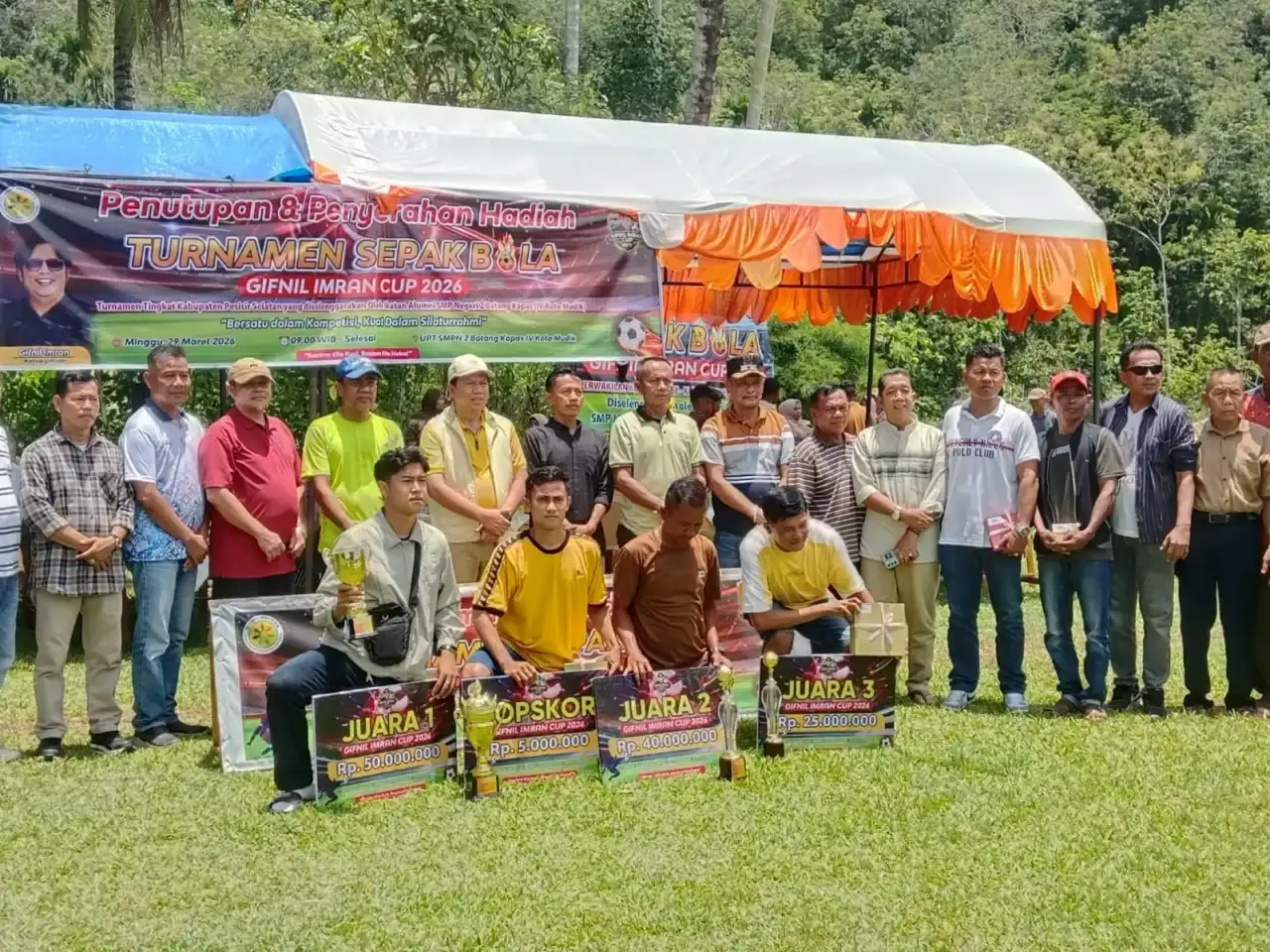 Turnamen sepakbola Gifnil Imran Cup resmi ditutup Minggu (29/3/2026) setelah terselenggara dengan lancar dan sukses. Kegiatan yang digelar di lapangan sepakbola Lubuk Nyiur, Nagari IV Koto Mudiak, Kec. Batang Kapas, Kab. Pesisir Selatan.