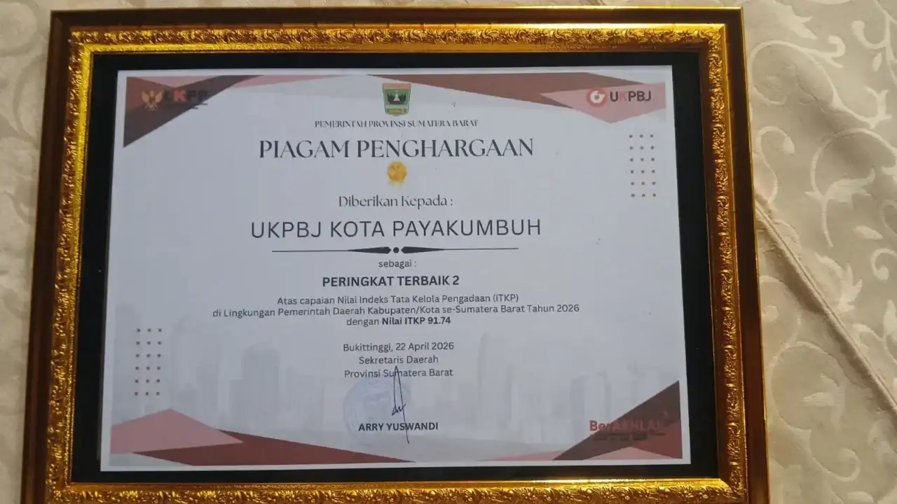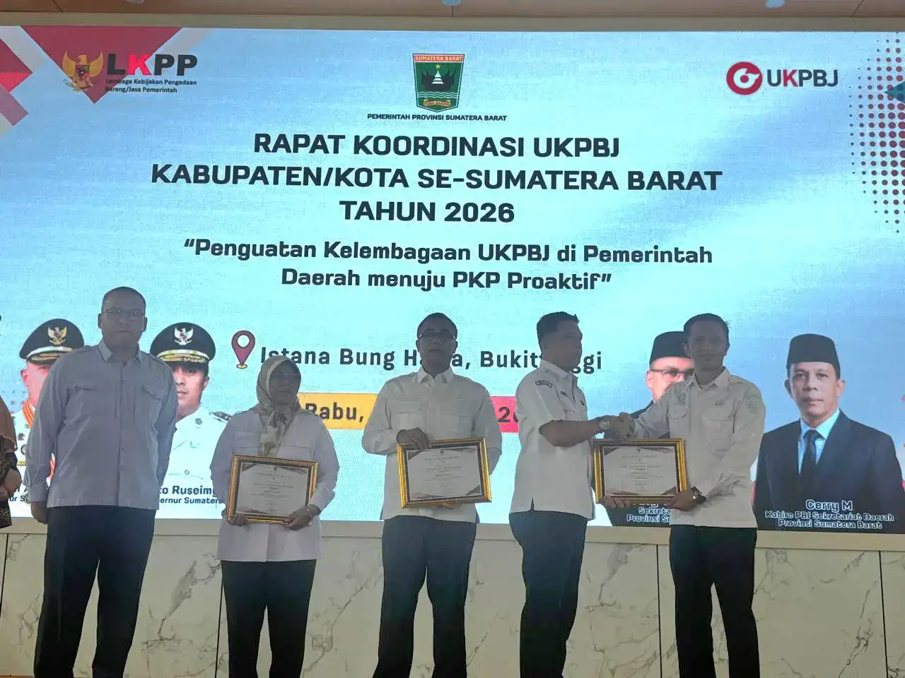 Pemko Payakumbuh kembali mencatatkan capaian positif di tingkat provinsi setelah Unit Kerja Pengadaan Barang dan Jasa (UKPBJ) meraih penghargaan atas capaian Indeks Tata Kelola Pengadaan (ITKP) tahun 2025 dalam Rapat Koordinasi UKPBJ kabupaten/kota se-Sumatera Barat.