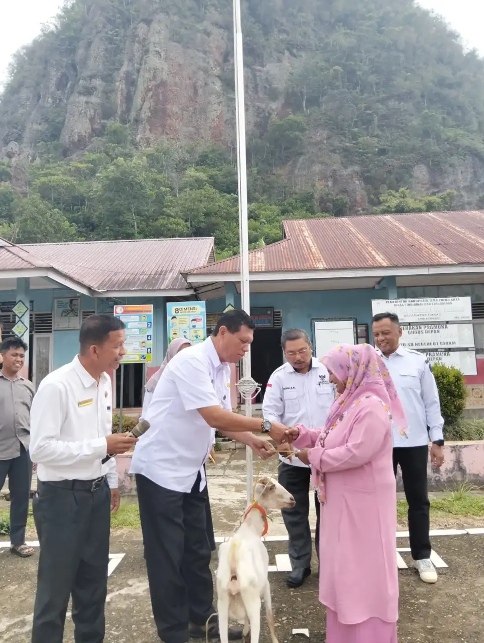 Pada hari Rabu (21/6/2026) lalu Kadisdik Kebudayaan Kabupaten Limapuluh Kota, Antoni, S.Pd.,M.Pd secara simbolis telah menyerahkan bantuan enam ekor kambing kepada murid melalui orang tua murid.
