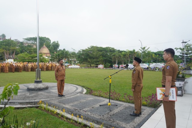 Dalam sambutannya, Wabup Ahlul Badrito menyampaikan salam dari Bupati Limapuluh Kota Safni yang belum dapat hadir memimpin apel, karena sampai saat ini masih mengikuti Retret kepala daerah di Akademi Militer (Akmil) Magelang.