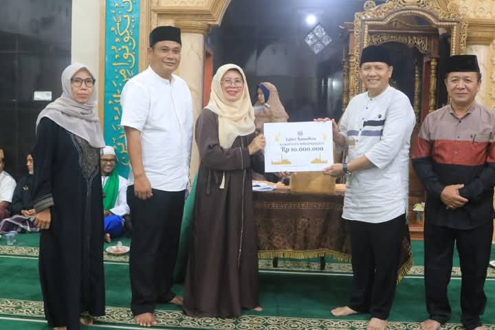 Wakil Bupati Leli Arni secara simbolis menyerahkan bantuan untuk Masjid At-Taqwa uang sebesar Rp10 juta serta bantuan tikar 3 buah dan mushaf Alqu’an 4 buah.