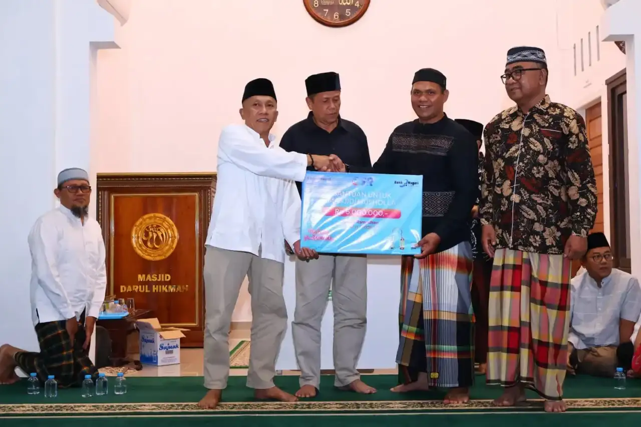 Dalam kunjungan tersebut, wali kota menyerahkan bantuan masing-masing Rp5 juta dari Bank Nagari dan Rp5 juta dari Perumda Tirta Sago untuk mendukung pembangunan masjid.