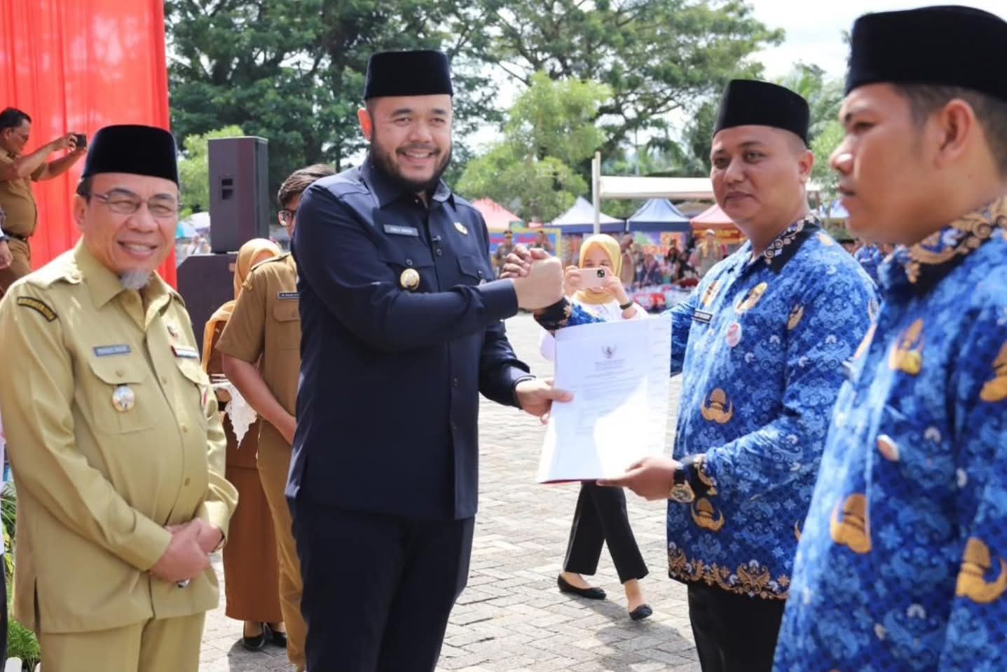 Wali Kota Padang Fadly Amran secara resmi menyerahkan Surat Keputusan (SK) Pengangkatan Pegawai Pemerintah dengan Perjanjian Kerja (PPPK) formasi tahun 2024 kepada sebanyak 2.844 orang, yang digelar di Lapangan APEKSI, Balai Kota Aia Pacah, Senin (30/6/2025).