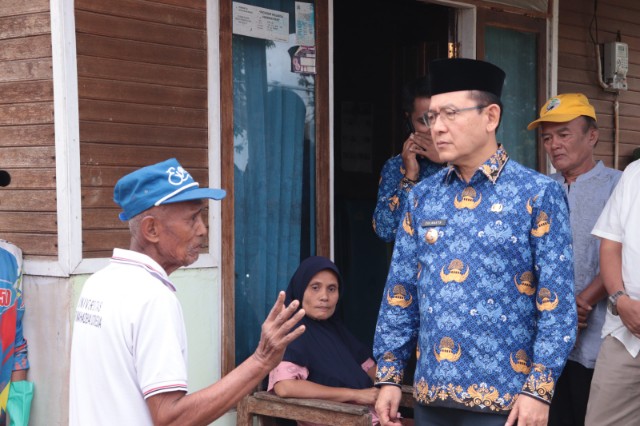 Wali Kota Payakumbuh Zulmaeta menyerahkan bantuan dari Baznas Kota Payakumbuh untuk Anjas Khatib (65) warga Kelurahan Koto Panjang Dalam, Lamposi Tigo Nagori yang terdampak bencana kebakaran beberapa waktu lalu.