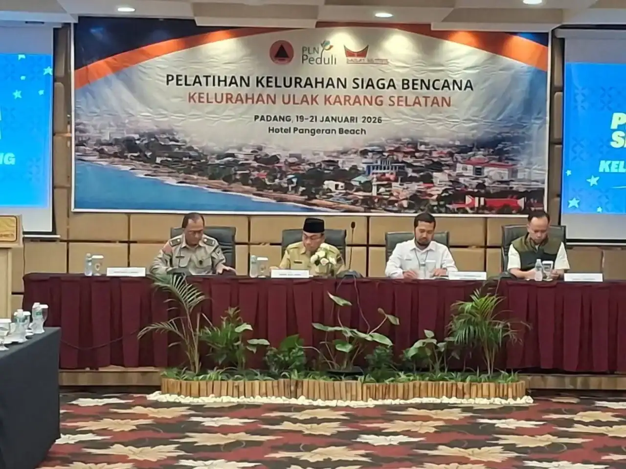 Wakil Wali Kota Padang Maigus Nasir membuka Pelatihan Kelurahan Siaga Bencana (KSB), Senin (19/1/2026). Pelatihan bagi KSB Kelurahan Ulak Karang Selatan itu digelar di Hotel Pangeran Beach, Padang.