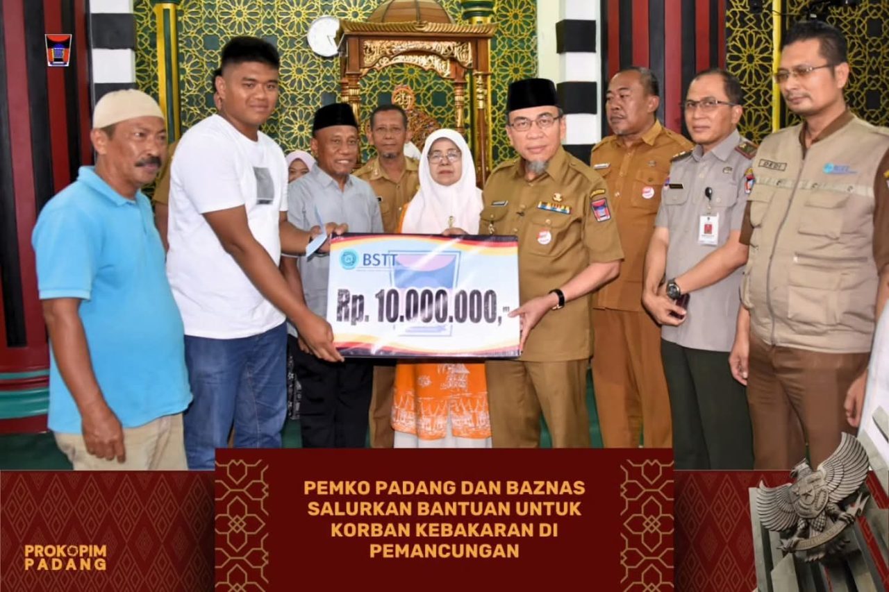 Pemerintah Kota Padang bersama Baznas Kota Padang menyalurkan bantuan kepada korban kebakaran rumah yang terjadi 9 Oktober 2025 lalu, di kawasan padat penduduk Jalan Pemancungan, Kelurahan Pasar Gadang, Kecamatan Padang Selatan.