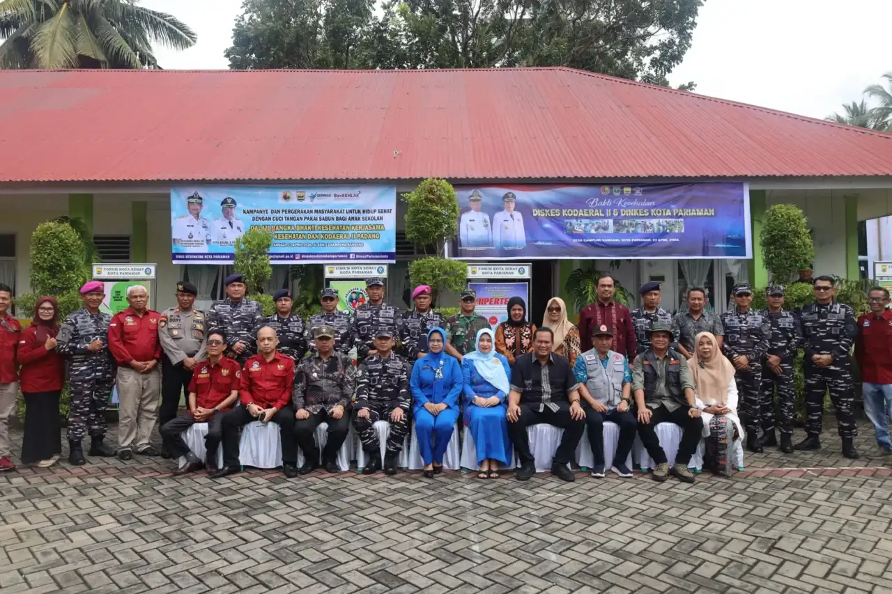 Komandan Kodaeral II Laksamana Muda TNI Sarimpunan Tanjung didampingi Ketua Jalasenastri Daerah Kodaeral II Gabungan Koarmada RI Ibu Endang Sarimpunan Tanjung menghadiri acara ketahanan pangan dan bhakti kesehatan di wilayah kerja dan binaan Kodaeral ll di Kota Pariaman Sumatera Barat pada Kamis (23/4/2026).